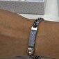 But what makes it even more aesthetically pleasing is the small sparkling stone embedded next to the plate. This subtle and elegant point of light adds a special touch that enhances the overall design of the cuff bracelet without overwhelming it. It’s the kind of shine that doesn’t need to stand out to be noticed, perfect for women who prefer delicate and well-thought-out details. A gleaming accent that complements any style and adds that beautiful finish that makes a difference.